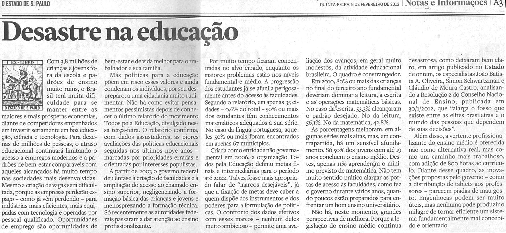 Os que poderiam melhorar a conjuntura da educação no país, mas não mexem uma palha, ou um neurônio perdido, para isso, no mínimo, também têm déficits de educação.
